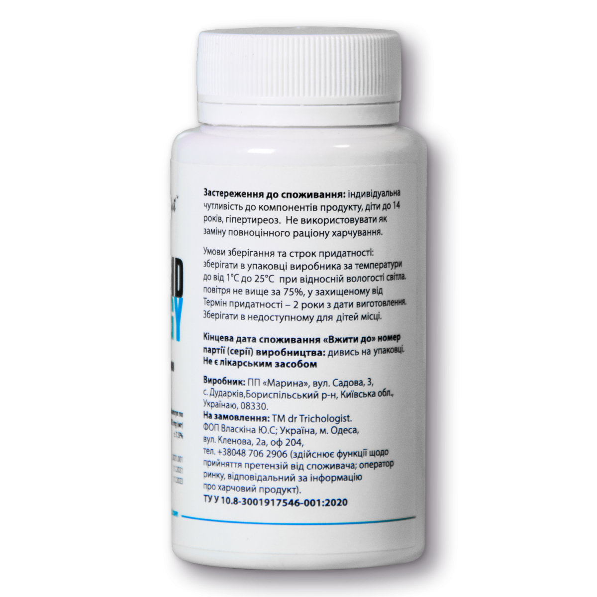 Dr.Trichologist Thyroid Energy – спеціальна комплексна дієтична добавка, яка включає вітаміни, мінерали та трав'яні екстракти, необхідні для підтримки здоров'я щитовидної залози. Сприяє підтримці здоров'я щитовидної залози, яка відповідає за безліч важливих процесів в організмі. Підтримка щитовидної залози необхідна складова для здоров'я волосся та шкіри голови.