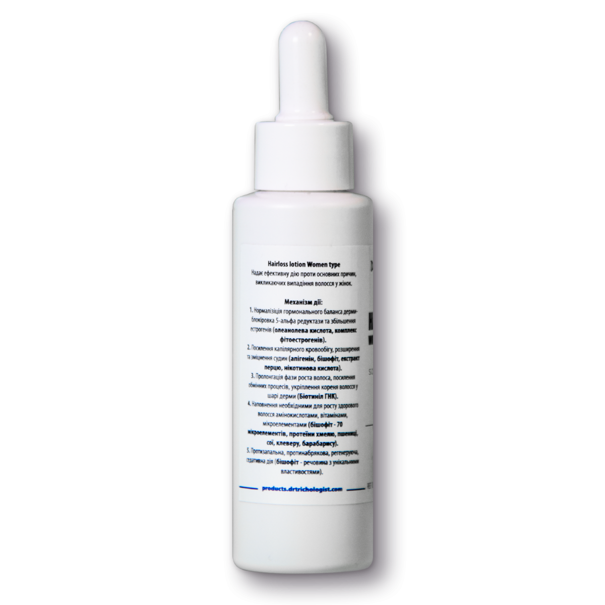 Надає ефективну дію на всі основні причини випадіння волосся у жінок.