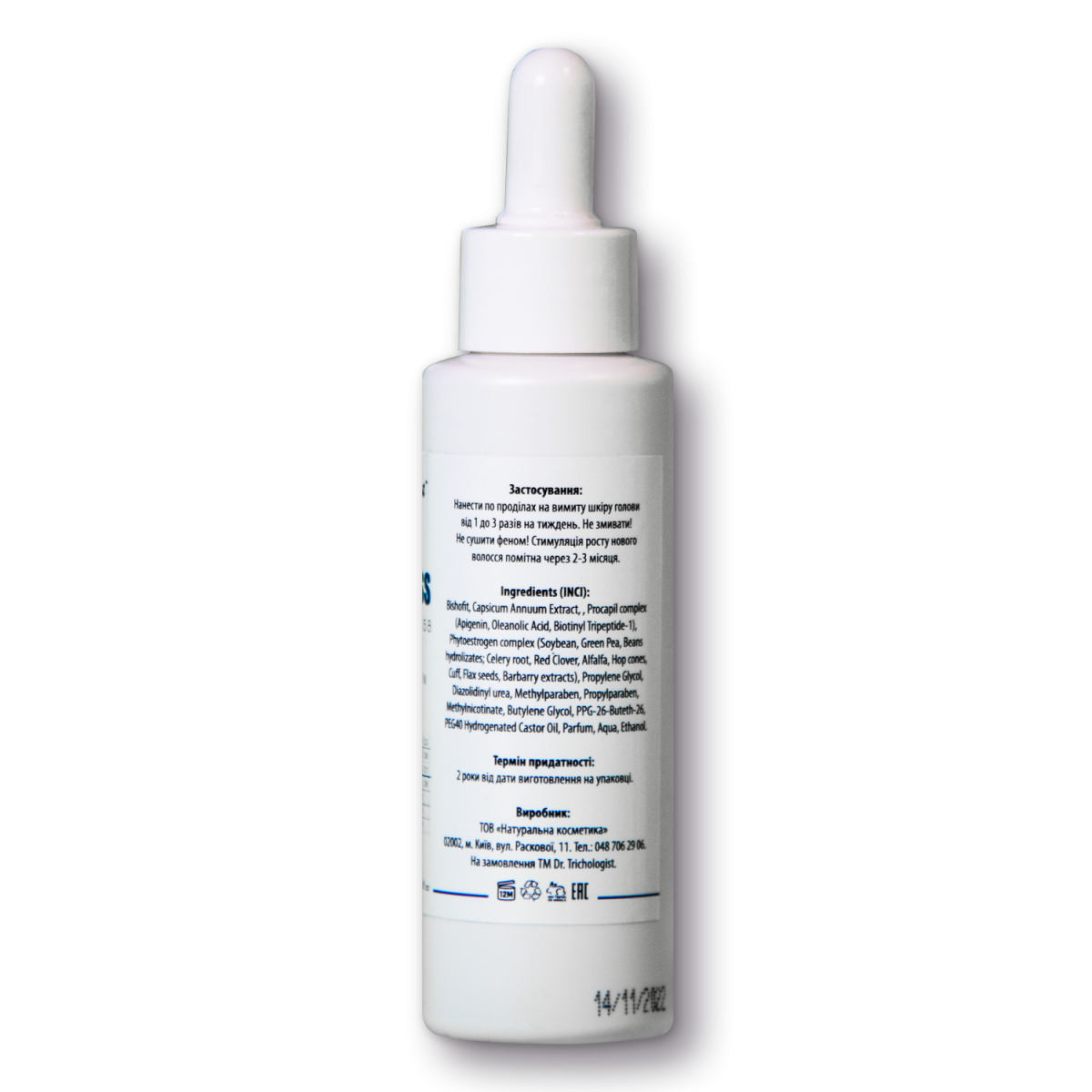 - Пролонгація фази росту волосся, посилення обмінних процесів, зміцнення кореня волоса в дермальном шарі (біотин ГНК).